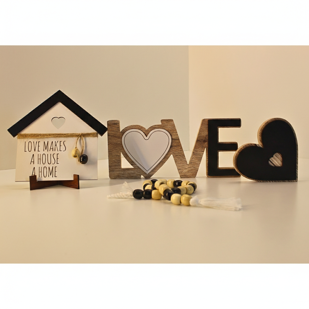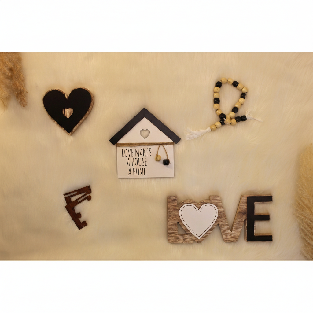 • مجسم منزل بعبارة: "Love makes a house a home"