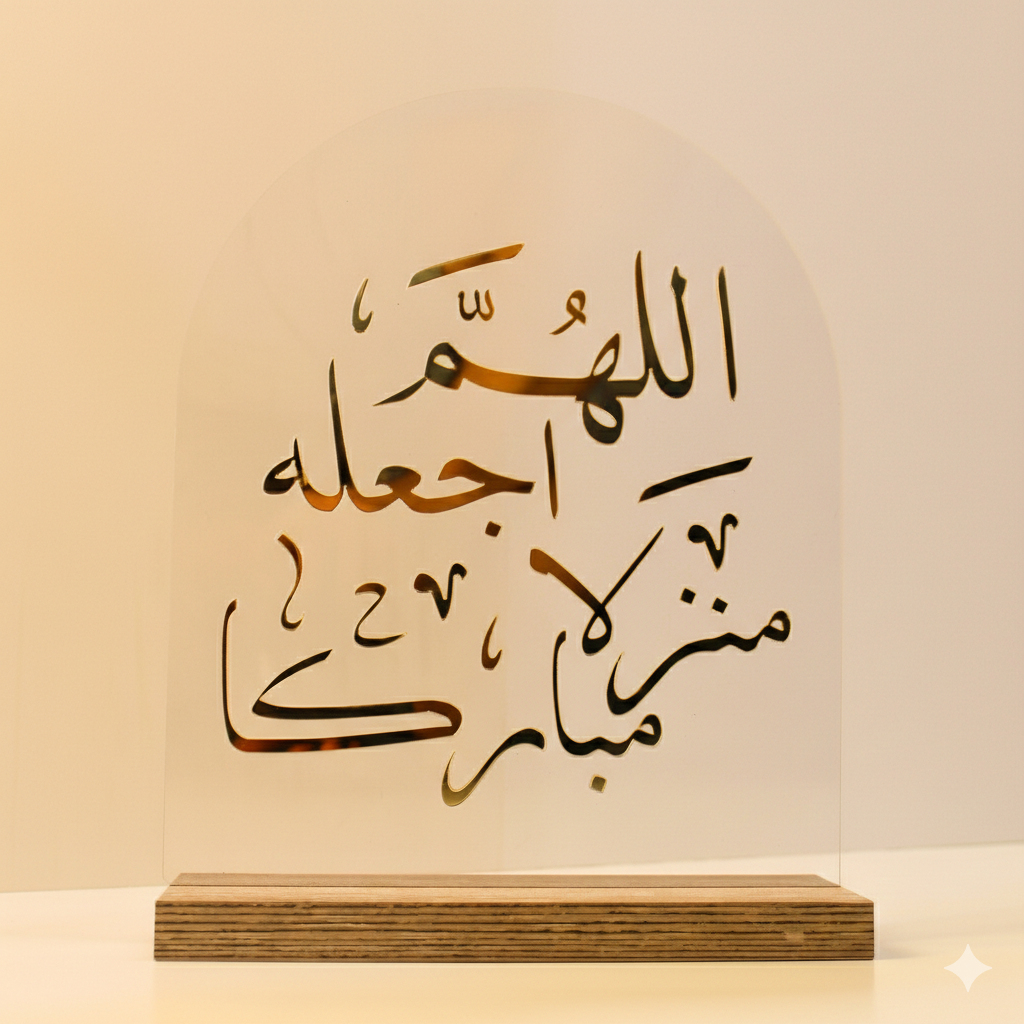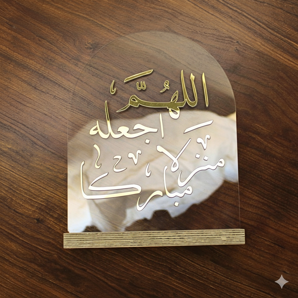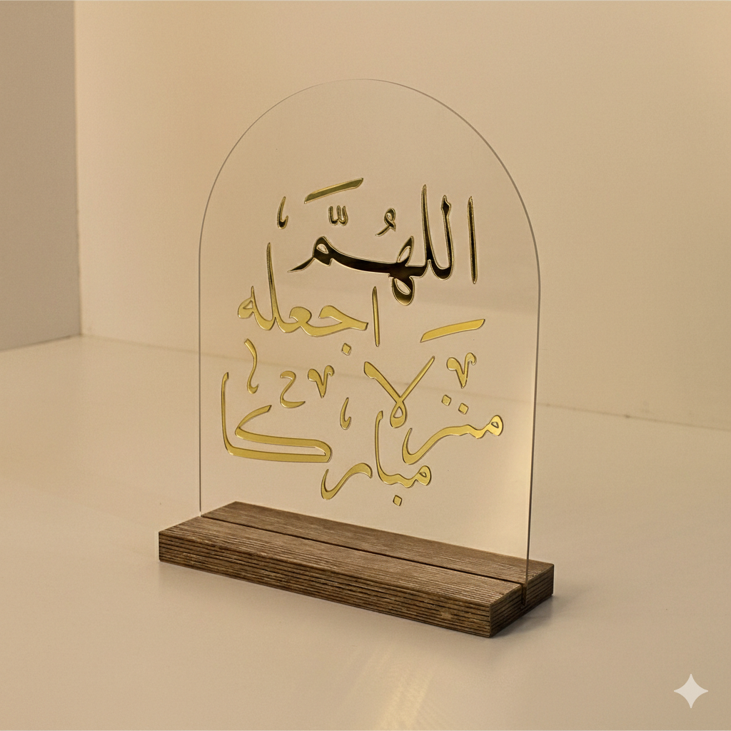 أكريلك شفاف منحني بخط عربي ذهبي