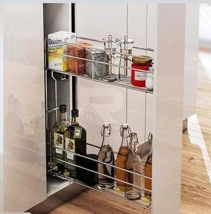 - *الاستخدام:* تخزين وتنظيم الزيوت، التوابل، المنظفات، العلب، أو الأدوات داخل وحدات المطبخ الضيقة.