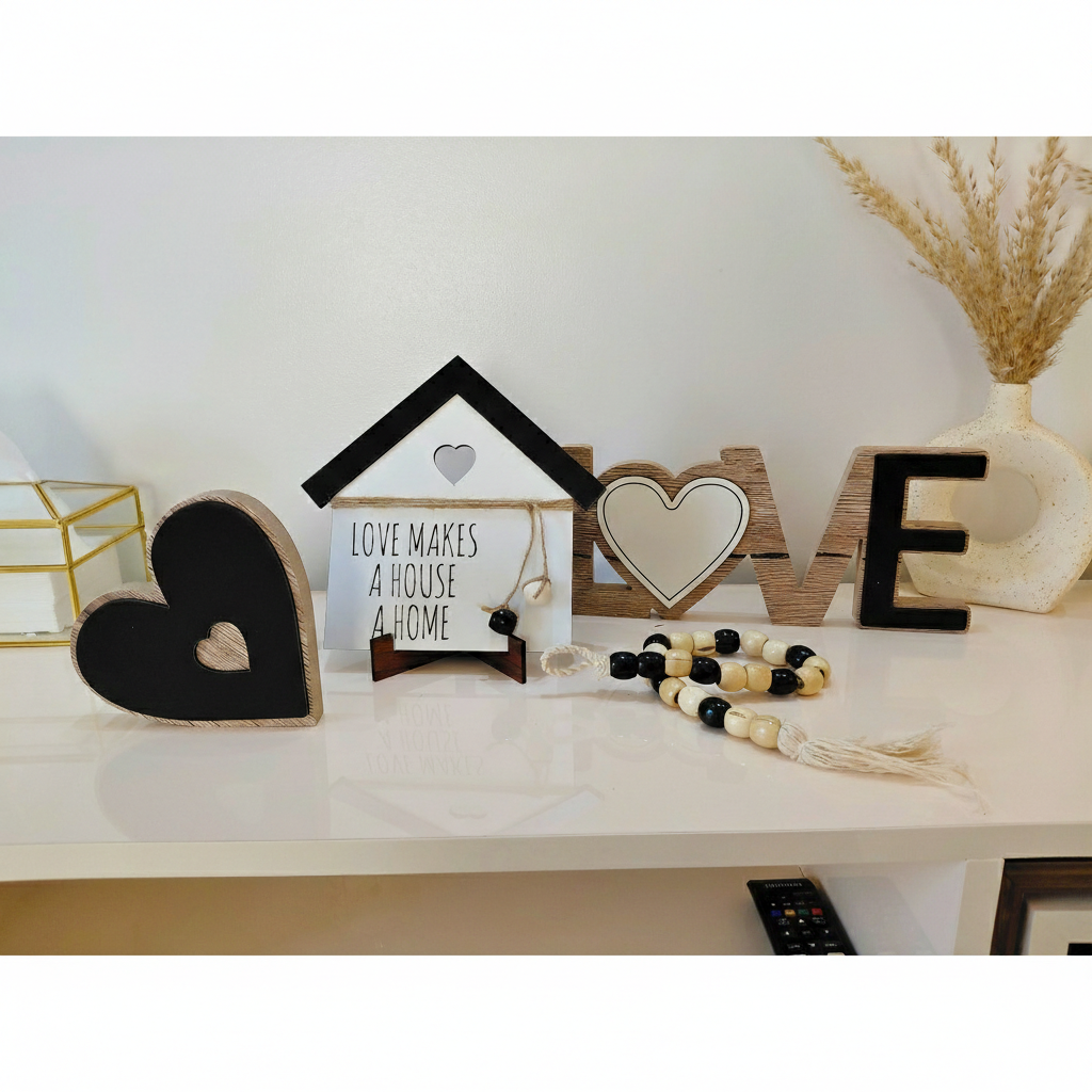• مجسم منزل بعبارة: "Love makes a house a home"