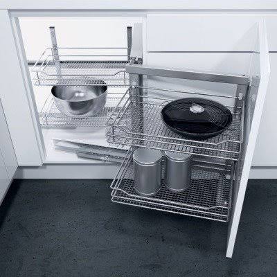- **الاستخدام:** استغلال زاوية الخزائن السفلية وتسهيل الوصول للمساحات العميقة.