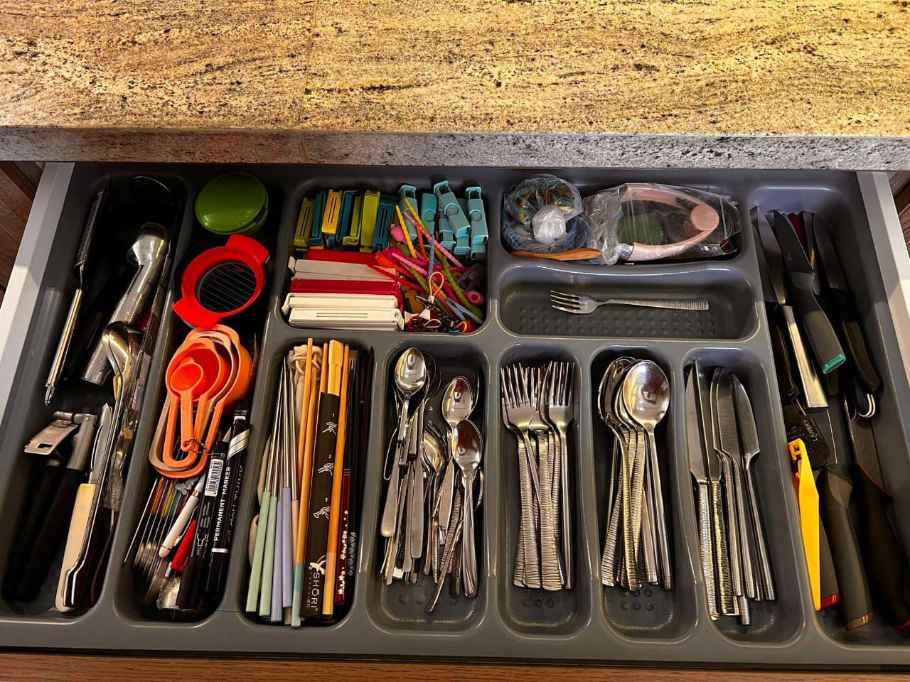 - *الاستخدام:* تنظيم الملاعق، الشوك، السكاكين، وأدوات المطبخ الصغيرة.